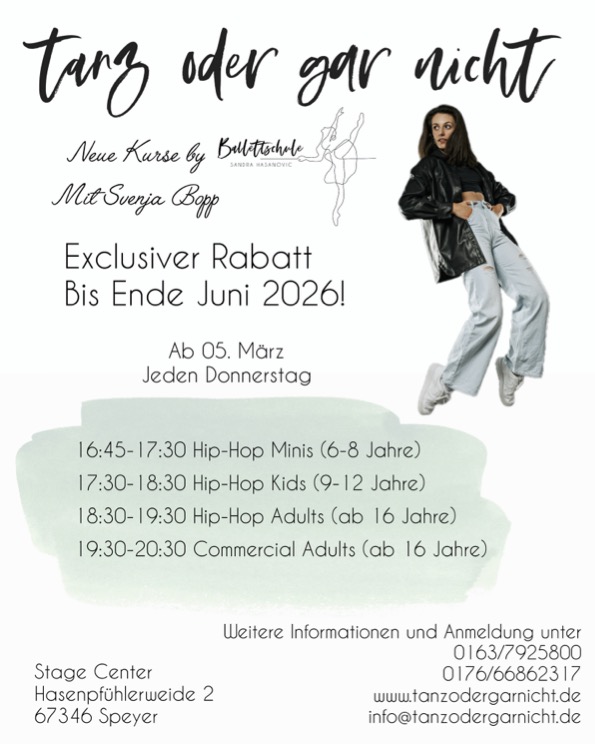 Seit März 2019 führe ich die ehemalige Ballettschule Sternberger in der Ludwigstraße 37 im Herzen von Speyer.